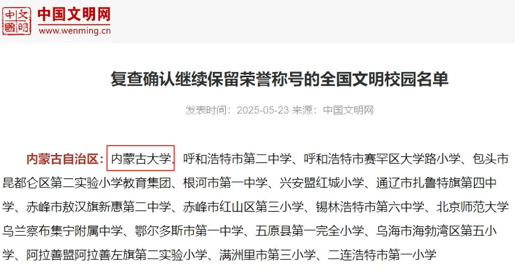 近年来,学校全面学习贯彻习近平总书记关于精神文明建设的重要论述,坚持不懈用社会主义核心价值观凝魂聚气、强基固本,扎实推进惠民创文、精准创文、常态创文,把文明校园创建任务融入日常,对标对表、逐项完善,持续开展丰富多彩的校园文化活动,将优秀传统文化融入思政教育,推进课程改革,将安全教育纳入教学内容,树立了独具特色的北疆校园文化标杆。下一步,学校将不断优化育人环境,以铸牢中华民族共同体意识为工作主线,丰富校园文化生活,进一步激发新时代青年投身中国式现代化建设的精神动力,持续擦亮“全国文明校园”底色。