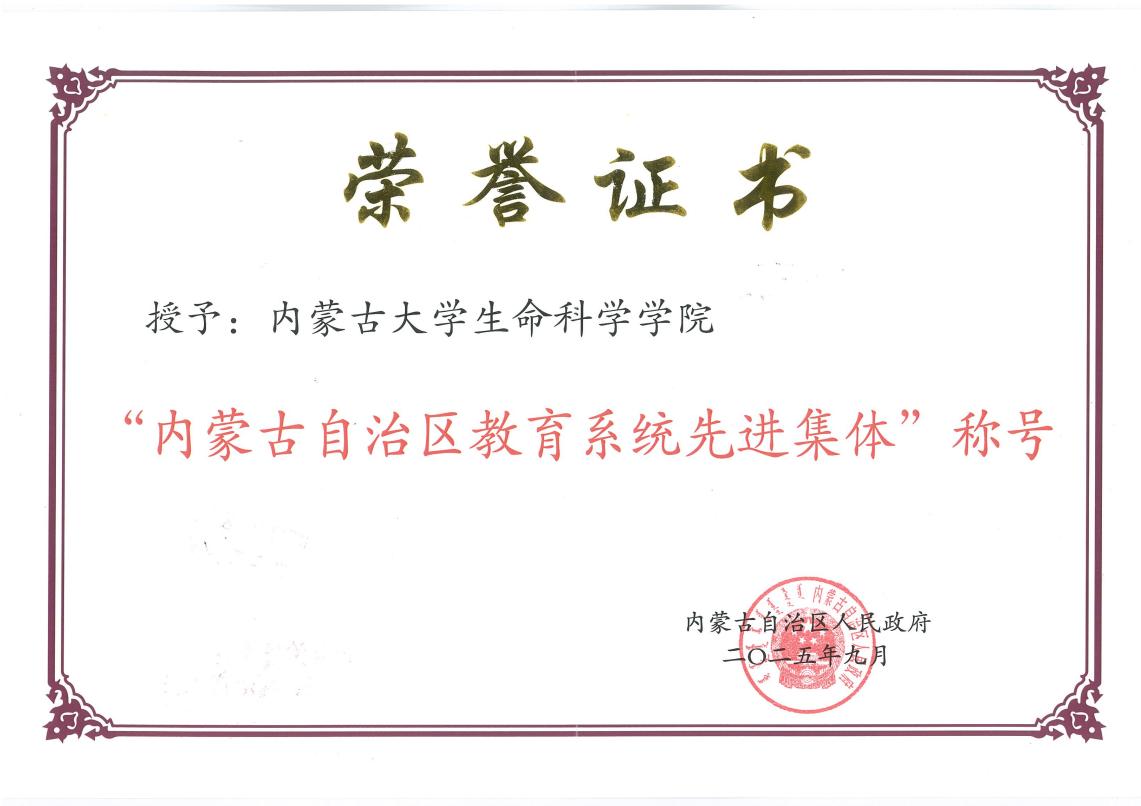 近日,自治区人民政府表彰了2025年全区教育系统先进集体和先进个人。我校生命科学学院荣获“内蒙古自治区教育系统先进集体”荣誉称号。 生命科学学院将以此为契机,继续大力弘扬教育家精神,引领教师以勤勉笃行的姿态潜心治学、开拓创新;坚守立德树人根本,培育心怀家国、堪当大任的栋梁之才;持续筑巢引凤,打造一支师德高尚、业务精湛的高水平师资队伍;全力营造尊师重教、和谐奋进的浓郁氛围,为教育强国建设贡献力量。 (供稿:生命科学学院 编辑:武涛 审核:李文娟 终审:阿茹娜) 上一条:校长武利民率团出访英国,加强国际合作交流 下一条:学科平台+1!“蒙古高原生态与可持续科学研究中心”成立!