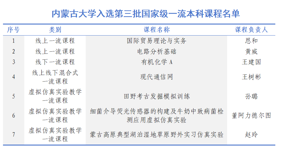 内蒙古大学入选第三批国家级一流本科课程介绍