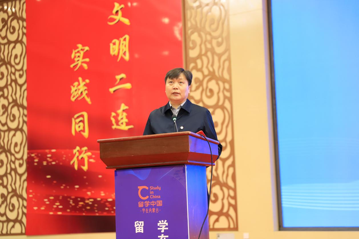 近日,2026年全区高校来华留学生招生推介会暨基础教育阶段国际教育发展研讨会在二连浩特市国际会展中心举行。本次会议由自治区教育厅指导、二连浩特市人民政府主办,旨在搭建来华留学生招生对接平台,推动我区国际教育事业高质量发展。我校作为自治区高等教育学会外国留学生教育管理分会理事长单位与二连浩特市教育科技局共同承办此次活动,我校副校长达胡白乙拉出席会议并致辞。