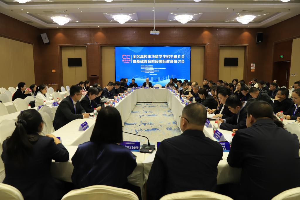 全区13所参展院校围绕留学生教育、学科专业、奖学金政策、文化活动、申请流程等内容进行招生宣讲,现场为学生与家长解答疑问。研讨会聚焦HSK3.0标准和CSCA来华留学本科入学学业水平测试、预科培养、基础教育国际化发展等议题,探讨来华留学教育管理的特色经验与创新做法。会议期间,高校代表参观了锡林郭勒职业学院二连浩特国际学院、二连浩特国门教育集团一中校区及二连浩特市第五小学,实地了解了当地国际教育开展情况。