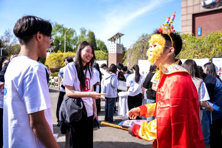 中文承载着千年华夏文明的记忆,是连接古今、联接世界的桥梁。“国际中文日”已成为全球中文爱好者的节日和世界了解中国的窗口。今年活动的主题为“中文:点亮多彩梦想”。我校以中国古典名著《西游记》为文化主线,采用“通关文牒集章”形式,设置甲骨文猜字、成语迷阵、断句挑战、诗词飞花令、皮影戏体验、非遗漆扇制作及书法题名等互动环节。非遗传承人现场演绎《西游记》故事皮影戏,留学生们亲手操作体验;在汉字、成语、诗词等趣味关卡中,大家锤炼了语言技能;通过漆扇、书法创作,亲身感受传统工艺与书画之美。